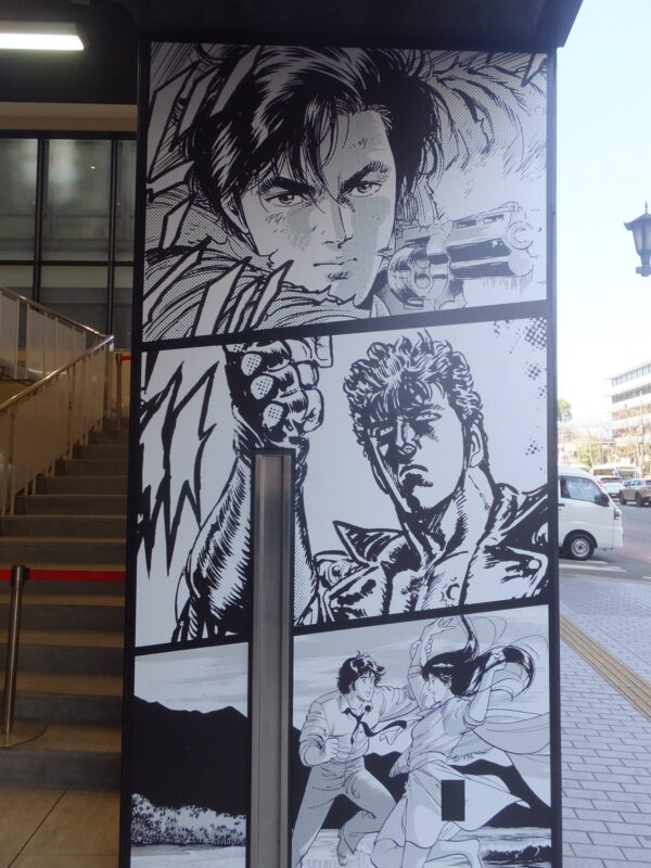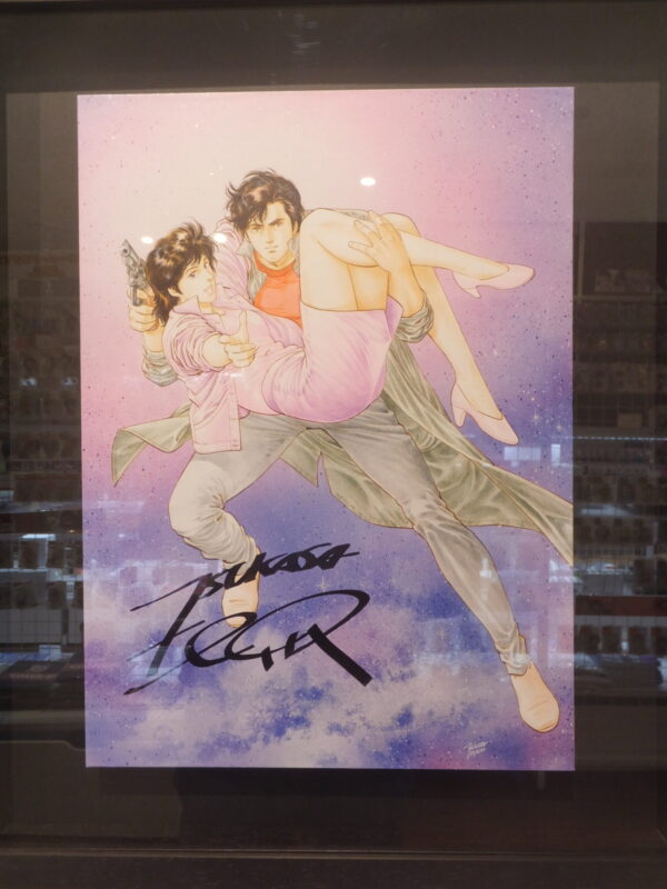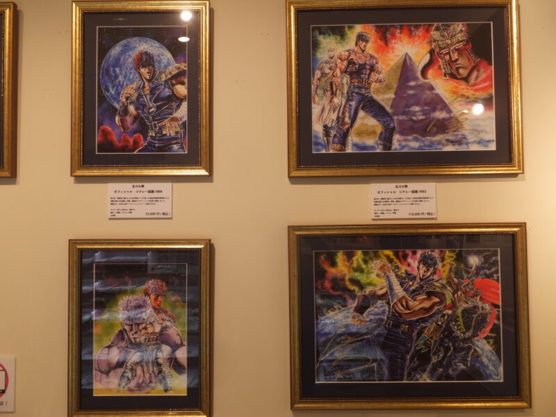 ショップ内は北斗の拳の原哲夫、シティーハンター、キャッツアイの北条司などのアート作品、その他グッズなど販売してました