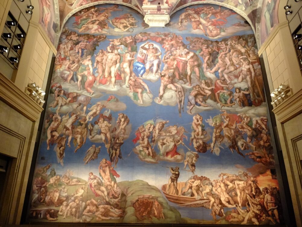 大塚国際美術館での有名作品はローマ教皇を決めるコンクラーベの場所、原寸大システィーナ礼拝堂の天井画『創世記 天地創造』、正面にあるキリスト『最後の審判』を再現してるシスティーナホールがある美術館