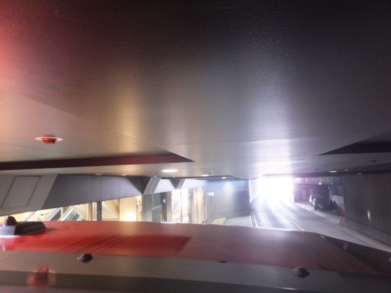 天井から車両のトップの隙間が20㎝ちょっとぐらいの感じで、バスタ内に進入直前の時が天井が激突するかと思うぐらいの景色で皆さんのビックリ悲鳴