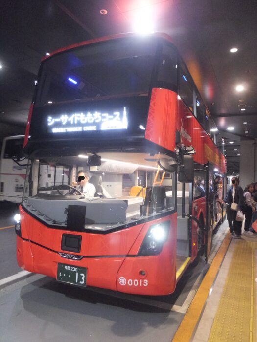 東京の丸の内側から出てる赤い車両のスカイバスは乗った事ありますが、福岡は乗った事なかったので今回、新車という事で乗車